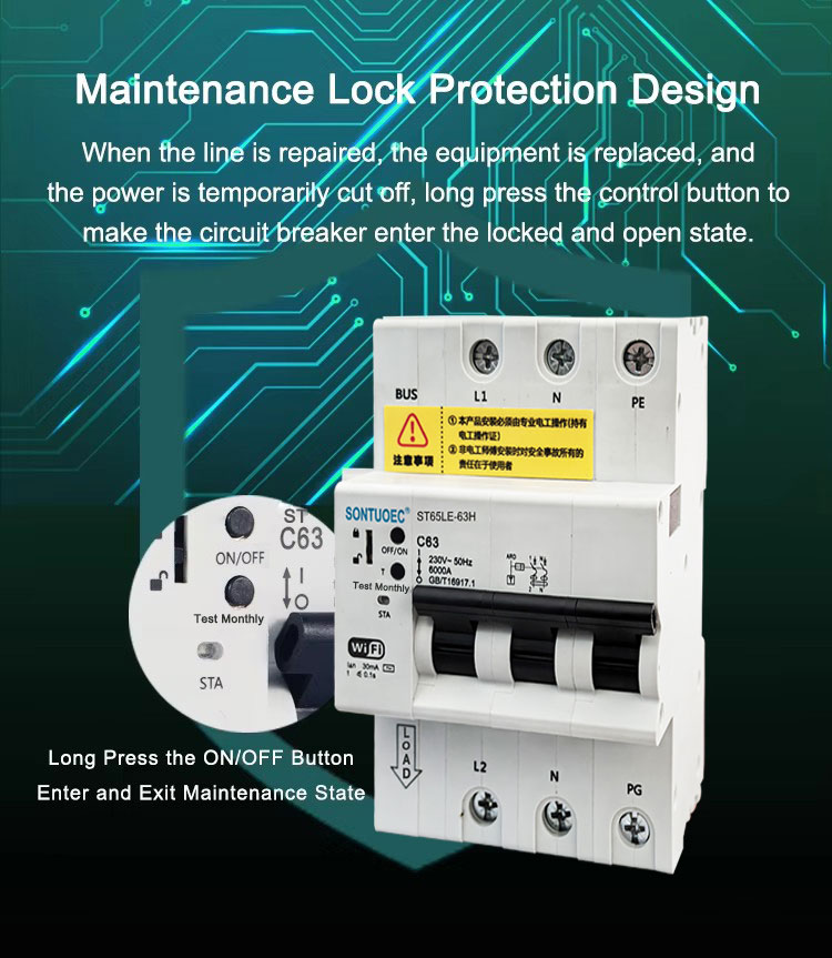 This WiFi 4G Tuya St65le-63h Series Multi Functional RCBO Intelligent Circuit Breaker are suitable for 50Hz/60Hz, 230/400V 0~125A circuit which have the function such as overload protection, short-circuit protection and leakage protection. Shu bilan birga, bu aqlli ishlov beruvchi, Smart Cell telefon orqali global miqyosdagi masofadan boshqarish pultini yoqilgan / global masofadan boshqarish vazifasini bajaradi.